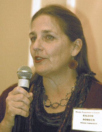“We know it doesn’t address all the harm in the region, but it is something we can begin to work with, to come up with some strategies to minimize some of the effects of the ongoing disaster,” newly appointed NMFS chief Eileen Sobeck told folks during an open forum with fisheries leadership from the National Oceanic and Atmospheric Administration (NOAA) at the recent Maine Fishermen’s Forum.