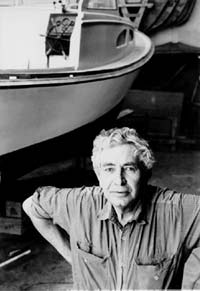 Carroll Lowell, 1992, in the shop at Even Keel Marine Specialties in Yarmouth. Carroll opened the business in 1961 and subsequently built hundreds of commercial and pleasure boats of his and brother Royals design. Carrolls sons Jamie and Joe continue the family tradition there. |