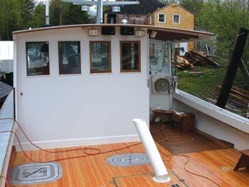 for dropping lobster into the tanks below deck. The split wheelhouse has two sets of