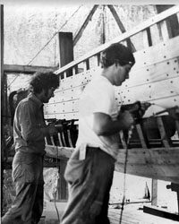 Bruce Farrin (left) and Eddie Simms fastening planks