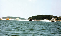 Thurman Alley, winner of last years Class E cup, took firsts at Moosabec and Stonington (26.7 mph). At the first venue, he was trailed by Oscar Beals Papas Pride, and Sonny Beals Nancy Anne. At Stonington, Ben Hardy in Lindsay Rene and Wayne Rich in Rich Returns, placed second and third.