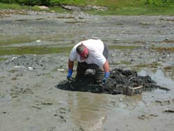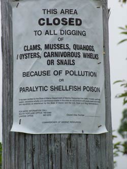 by Jeff Della Penna Small amounts of microscopic phytoplankton are always floating in the ocean. Trace levels draw little attention. When the saturation point or concentration reaches critical mass, they become toxic. As this concentration comes ashore, like most of the specks of food and dust floating in the water column, they are ingested by bivalve shellfish, with the algaes neurotoxins concentrating in shellfish meat, turning clams and other bivalves from succulent summer money-makers into biological time-bombs which under the right conditions can cause humans to experience numbness, respiratory problems - even death. As this red tide drags into July, many who rely on seasonal income from steamers and the like are calling this a natural disaster. Red tides come and go, but Maine clam diggers find a way to deliver, moving up or down the coast to avoid closures. Soft-shell clams according to Department of Marine Resources (DMR) 2003 landings data, are the third most valuable commercial species in Maine, with a value of $15,859,229.00 This year clamming will surely lose third place because something terribly wrong has happened on the clam flats. This year, a red tide has come like none anyone can remember. This red tide is not confined to rural backwaters. It has spread from the waters of Maine like a coffee stain on a bank note. On the last storm of May, a red tide was washed ashore that will break all records for the last 33 years, forcing the closures of New Englands most valuable clam flats from Passamaquoddy Bay at the Canadian boarder, all the way down the coast through Massachusetts. Scientists can only guess why Maine has had historically high levels of paralytic shellfish poisoning , especially during the warmer periods of the year. Usually, Maines red tide arrives in mid-August, after the height (and most profitable part) of the clamming season and just in time to push clam diggers back on dry land and into the blueberry barrens, where theyre needed for the annual harvest. In the last decade, red tides have arrived with such regularity, right at blueberry season that many Down East clammers complained it was a hoax, a conspiracy perpetuated by the DMR in cahoots with the blueberry industry. These diggers, who earn their living through the low tides, plucking soft-shells out of the muck one at a time, found it upsetting to be closed off the flats because of a red tide, only to see their Canadian neighbors still digging on the other side of the same bay. This tide is no hoax and aside from some tourists looking for birds, the clam flats of Maine are eerily empty - over 90% of all clam flats are closed for the duration of the tide. Clam diggers who had struggled through the winter and had probably already spent (two or three times) the extra money they were going to make through the July clamming high season, were suddenly unable to provide for themselves or their families through their fishery. In struggling Down East counties like Washington, where living handto-mouth isnt temporary, but a way of life, this red tide ended the careers of many struggling diggers. Travisse Stanley of Gouldsboro has been clamming for 36 years. He can remember one other time when the red tide was so destructive and came so early. I guess it was about 25 years ago, Stanley said. It was really bad and somehow some diggers got enough attention so that the government was willing to pay out unemployment. I wasnt eligible though, because I was in high school. But, I remember that some people were helped through that time and that it was bad. Stanley says that this red tide is worse than that one years ago, and there arent as many full-time clammers anymore, to fight for aid. Everyone that I know that clams is just in it part time. Ive only been doing it part time. Were all doing a bunch of jobs to make ends meet. Weve all rolled over to something else, trying to wait out the tide. The bad thing is that theyre saying that it might last for another month, at least. U.S. Senator Olympia J. Snowe (R) and other Maine politicians are trying to help save the season for the shellfish industry. Those individuals and businesses that make their living from the shellfish industry are in grave danger of serious economic harm, Snowe said in a prepared statement. It does not affect lobsters, shrimp, crabs, or fish, however, and the shellfish currently being sold in restaurants and stores was harvested in beds that were or still are safe. She announced June 23 that the Small Business Administration (SBA) has issued a disaster declaration for those counties in Maine that have suffered because of the recent red tide outbreak. The SBA contacted Snowe to inform her of its decision after reviewing a written request Snowe sent to SBA Administrator Hector Barretto . The declaration means Maine business owners in Penobscot, Oxford, Androscoggin, Somerset, Kennebec, Cumberland, Hancock, Knox, Sagadahoc, Waldo, Washington, York and Lincoln counties, who have suffered economic injuries from this disaster, can receive loans under the Federal Disaster Loan Program. But, what about the clam digger whos been forced out of his or her livelihood? Senators Snowe and Susan Collins (R) and Representatives Tom Allen (D) and Michael Michaud (D) say theyre working on it. They sent a joint letter to Secretary of Commerce Carlos Gutierrez, appealing for aid to Maine shellfish fishermen under Section 312(a) of the Magnuson-Stevens Fishery Conservation and Management Act and Section 308(b) of the Interjurisdictional Fisheries Act. Assistance available through the National Oceanic and Atmospheric Administration (NOAA) for fisheries declared commercial fisheries failures includes grants to states that could be used for compensation for lost fishing time and lost equipment, buy back of vessels and equipment, job retraining and incentives for economic diversification. This years devastating red tide has left many in the shellfish industry unable to wo